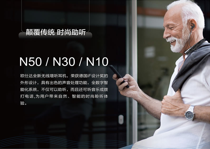 欧仕达全新无线增听耳机,荣获德国iF设计奖的外形设计,具有出色的声音处理功能,全数字智能化系统,不仅可以助听,而且还可听音乐或拨打电话,为用户带来自然、智能的时尚聆听体验。