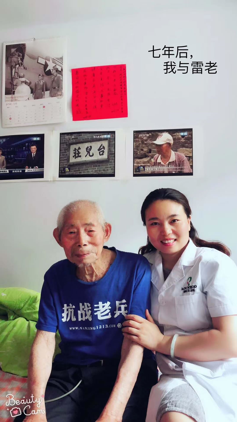 七年前,我们和抗日老兵志愿者一起看望他,亲自为他验配助听器。
