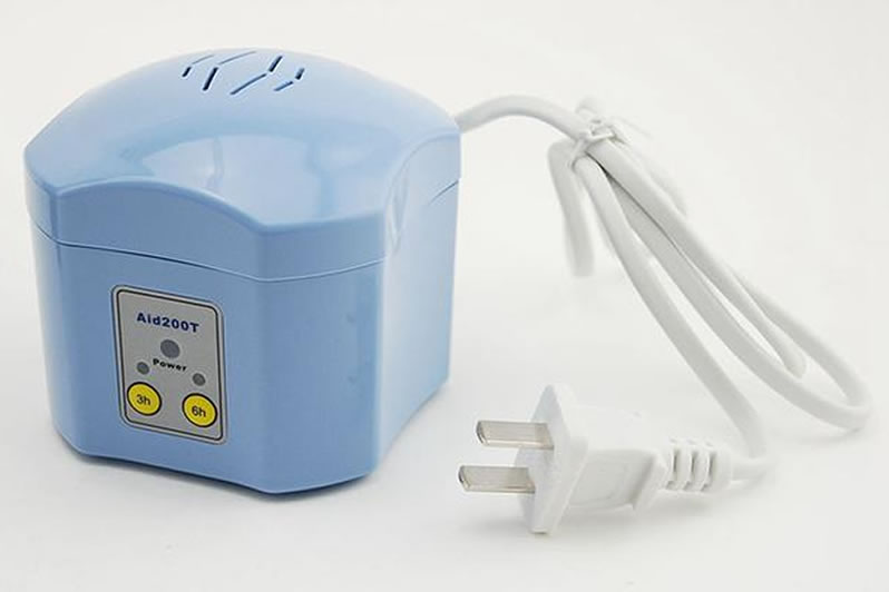 2、如果助听器受潮了,不要使用烤箱、微波炉或者电吹风等干燥工具,这样容易损坏助听器。正确方法是取出受潮的电池,打开助听器电池门,将助听器放在毛巾上存放在安全的地方,以达到驱潮的目的。