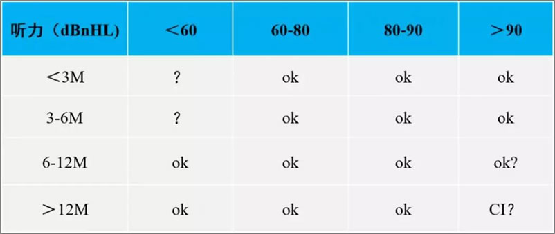 首先要考虑年龄,年龄小于3个月,没有达到做人工耳蜗条件的时候,直接选择助听器验配干预模式,待到9月龄考虑是否需要植入人工耳蜗。