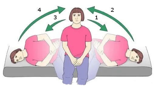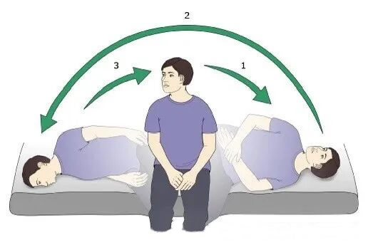 在床头放一个枕头。坐在离枕头足够远的地方,以便躺下时其位于肩部而非头部下方。坐在床上,双腿前伸。两侧留出空间,以防向右侧翻身时坠床。头稍微向后仰并左转45°,即直视前方与侧视左肩的中间角度。保持这一体位30秒。迅速躺下,头部位置不变,保持30秒。仰卧时,向右转头。此时头部应略微后仰,右转45°,即直视前方与侧视右肩的中间角度。保持这一体位30秒。现在保持头部位置不变,翻身成右肩侧躺,使面部几乎朝下,右臂位于身体下方。头部应仍位于直视前方与侧视右肩的中间角度。保持这一体位30秒。从床边坐起来。向医生或理疗师咨询重复运动的时间和频率。Semont手法–主要用于清楚眩晕是由哪只耳朵的钙沉积物引起时。如果右耳有问题: